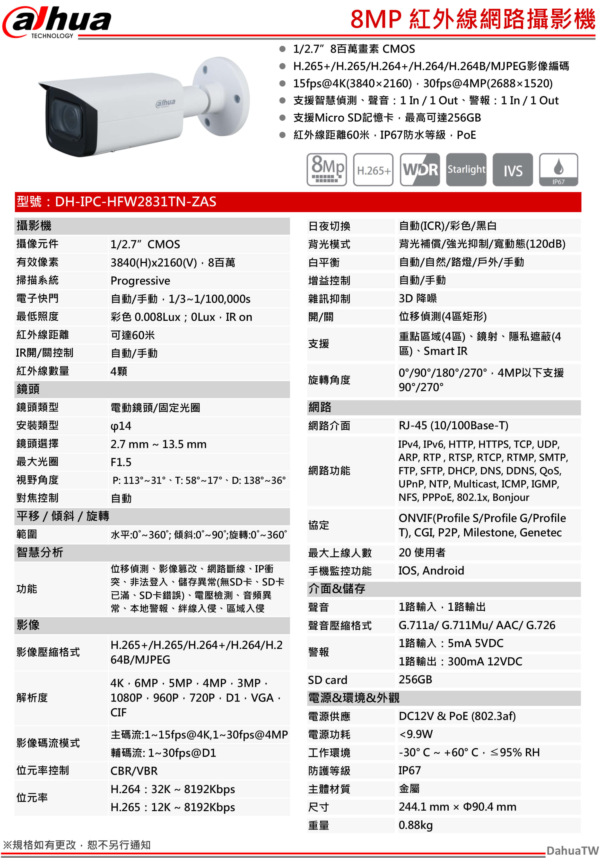 首頁 > 商品展示 > 8MP 星光級槍型網路攝影機